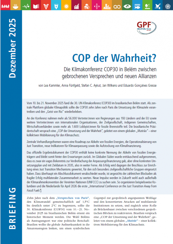 Die 30. UN-Klimakonferenz (COP30) im brasilianischen Belé sollte zehn Jahre nach Paris ein Wendepunkt sein – eine „COP der Umsetzung und der Wahrheit“, wie die brasilianische Präsidentschaft versprach. Im Zentrum stand eine Roadmap zur Abkehr von fossilen Energien, die Operationalisierung von Just Transition, neue Indikatoren für Klimaanpassung sowie die Aufstockung von Klimafinanzierung.